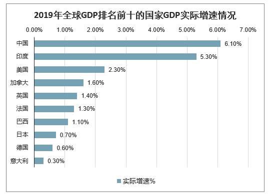 資料來源:中國產業信息網 《2019年全球GDP排名前十国家、排名前十国家GDP全球占比、GDP排名前十的国家GDP实际增速情况》2020.04.07