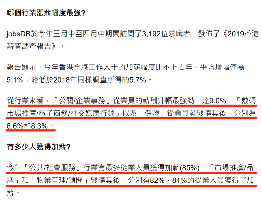 行業發展如何,也可以參考花紅的發放情況。根據JobsDB在2019年5月31日發布的《2019香港薪資調查報告》,這些行業2019年上半年仍保持著不錯的勢頭: