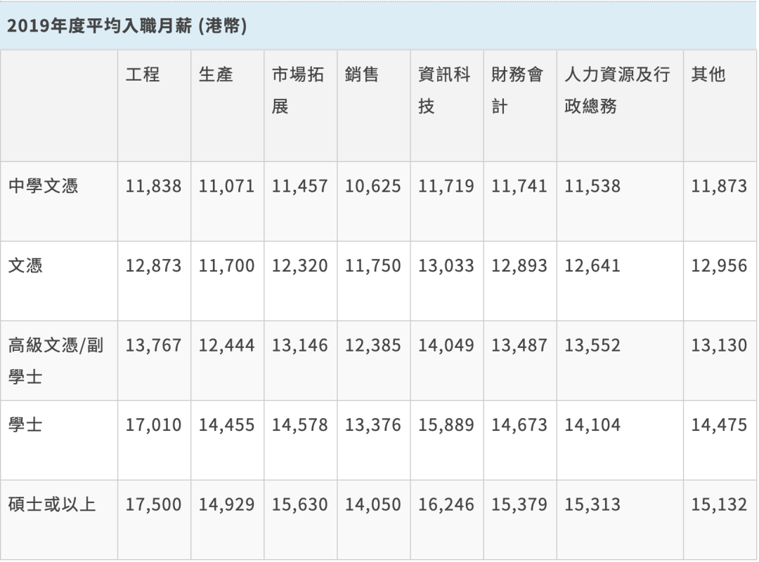 是的,更高的學歷水平總體而言意味著擁有更高的起薪點,來看《2019年粵港澳大灣區(香港特區)薪酬及福利調查》的統計數據: